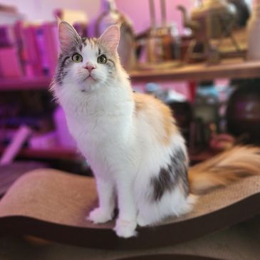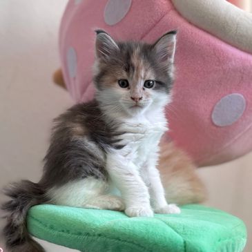 Named after the Greek Goddess of Wisdom and Warfare, Athena is a lively and playful kitten who’s always seeking attention. Whether she’s running after her siblings or chasing balls like a little soccer star, she brings energy and excitement to every moment. Her clever antics and affectionate nature make her a delightful presence, ensuring that every day is filled with fun and love.
