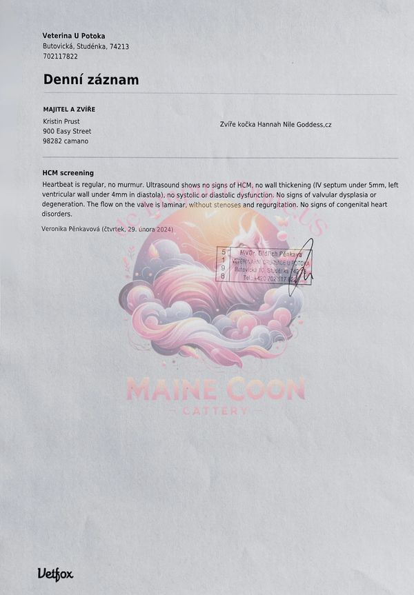 Through Jolana's lens, you'll witness Hannah's cardiac sonogram, performed by Dr. Pěnkava at Veterina U Potoka in Studénka, Czech Republic.